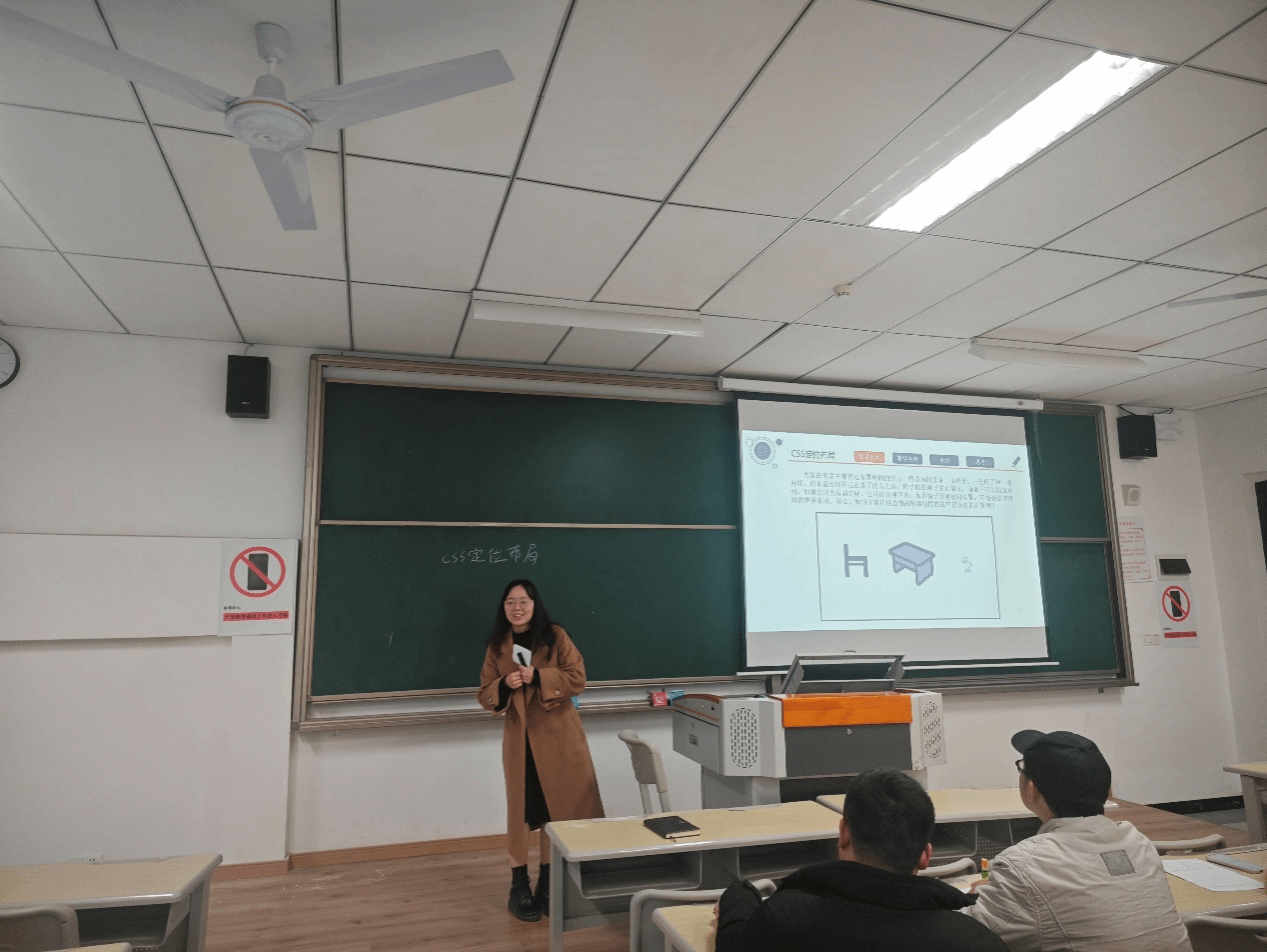 首先,阳俊杰老师以《前端开发技术——CSS定位布局》为主题,结合案例分析与互动问答,系统讲解了静态定位、相对定位、绝对定位等核心知识。同时,她通过实际图示案例,对比分析了不同定位方式的适用场景及优缺点,帮助学生掌握布局策略的选择逻辑。