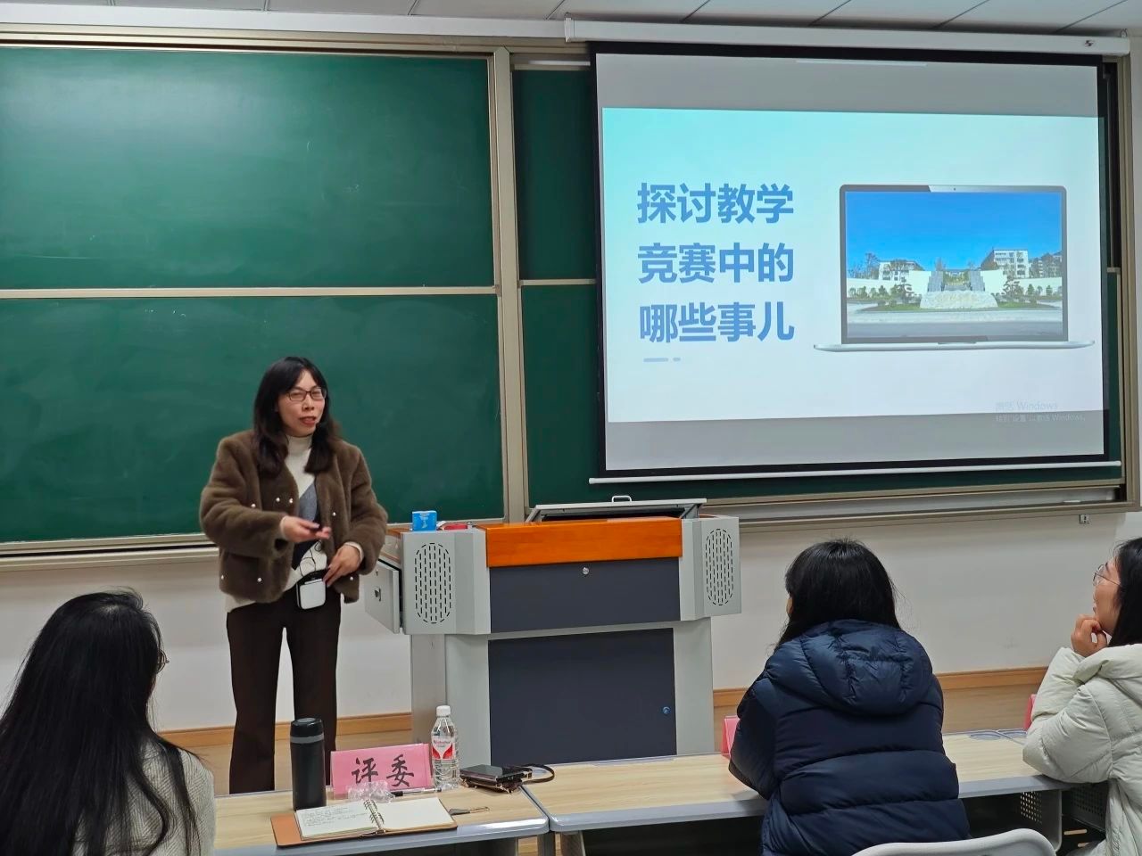 教学展示结束后,陈玲教授作为特邀评委对参赛教师的表现进行了细致点评。她充分肯定了教师们在课程思政教学中的创新探索,并结合自身丰富的教学经验,从教学方法、内容设计、思政元素的融合等多个角度提出了针对性的改进建议,陈教授的点评既专业又富有启发性,让在场的教师对课程思政有了更深入的理解。