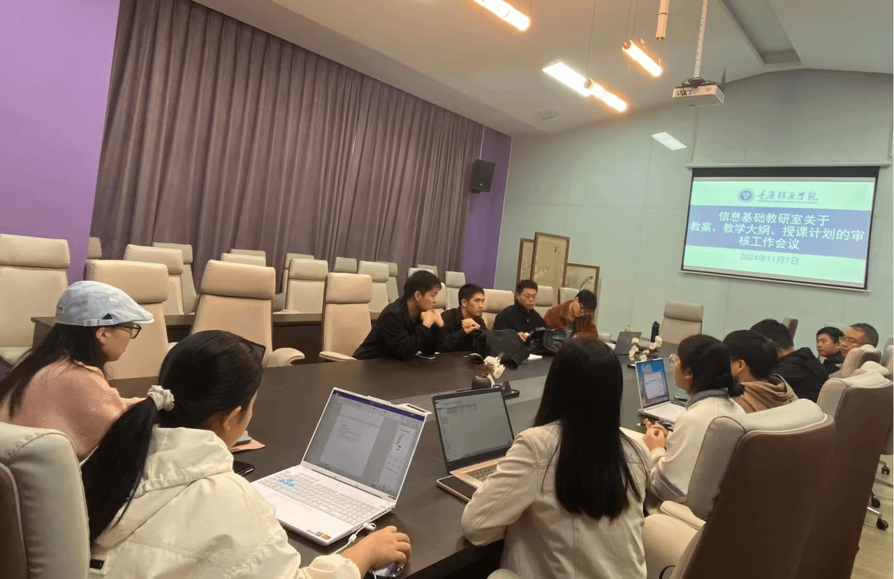 为切实提高教育教学质量,强化教学过程常规管理,全面掌握期中教学运行情况。信息基础教研室于2024年11月8日中午12:30在观云书院小雪会议室开展了关于教案、教学大纲、授课计划的审核工作会议。本次会议由信息基础教研室主任杨宏志主持,教研室全体教师参加。