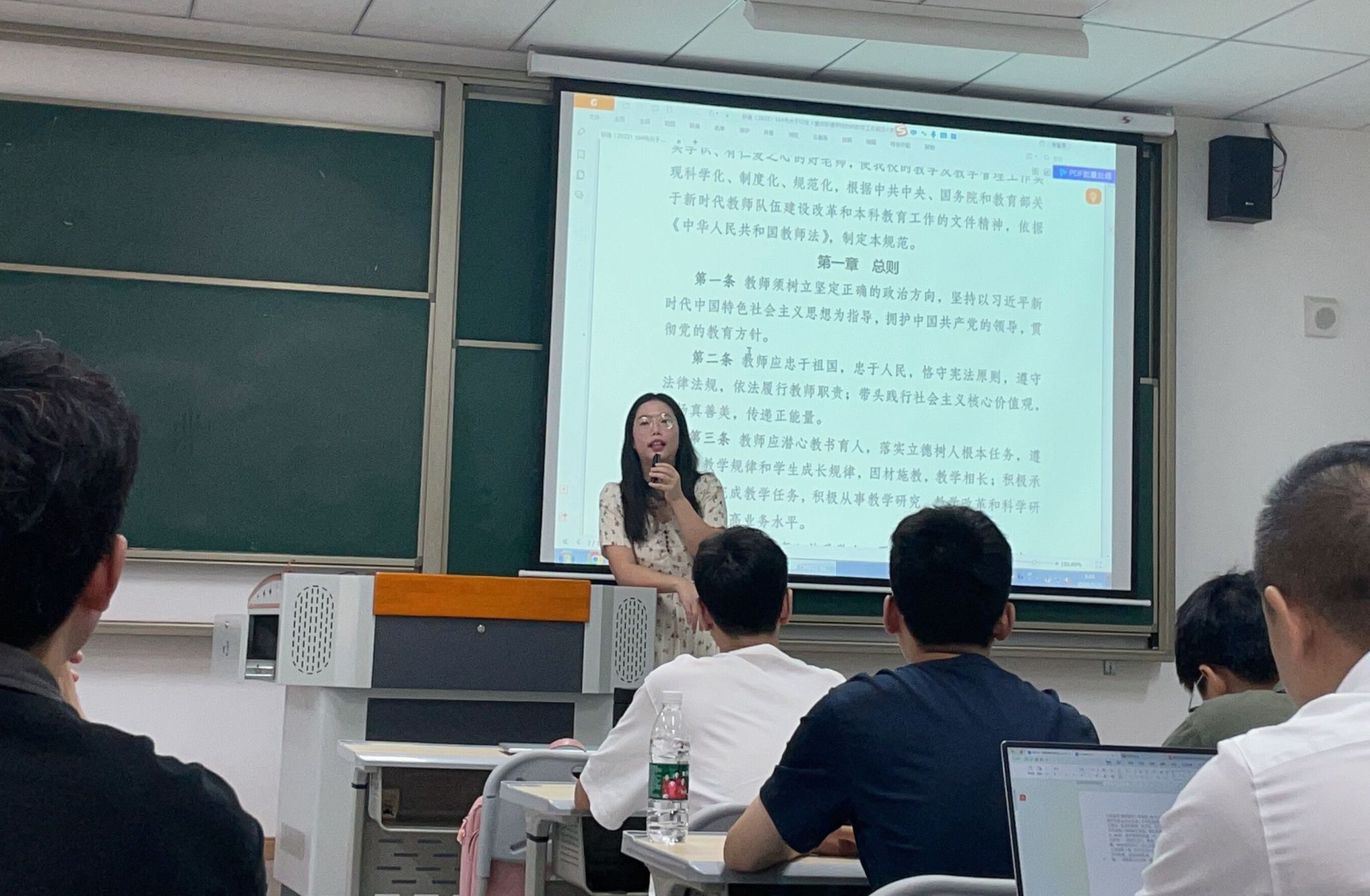 随后,教秘王陈老师对人事制度中的请假、试用期管理、考核以及竞聘评优等方面做了详尽的解读,使新教师们对学校的人事政策有了全面的认识。信息基础教研室杨宏志主任则进一步详细深入地解读了师德师风的具体要求,通过分析一系列日常教学中可能遇到的情景,阐释了如何在实际工作中践行良好的职业道德。他强调了师德师风红线不可触碰的原则,教师应当做到为人师表,以身作则。