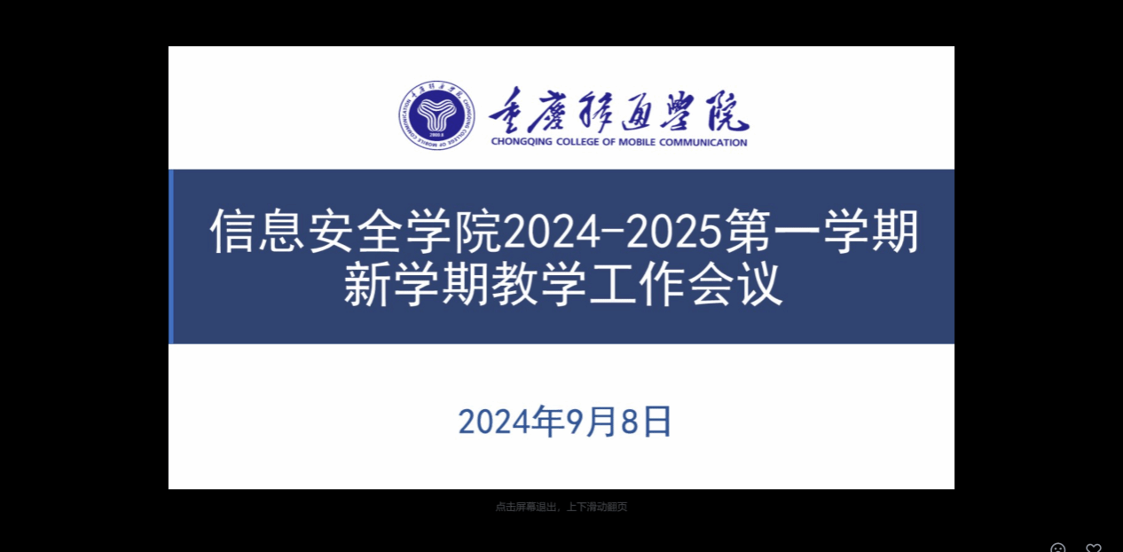 2024年9月8日上午,重庆移通学院信息安全学院通过线上方式成功召开了2024-2025年秋季学期学院教学工作会议。会议由信息安全学院代理教学副院长周小艳主持,信息安全学院主持工作副院长王宁、各教研室主任及全体专任教师出席会议。