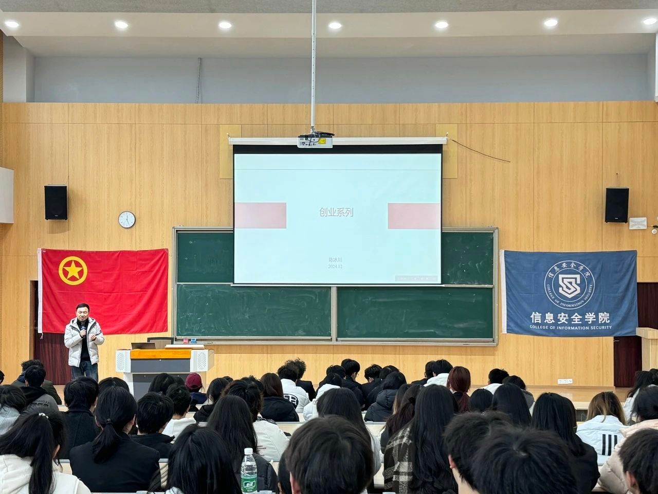 “少年辛苦终身事,莫向光阴惰寸功”在新时代澎湃的浪潮中,青年肩负着民族复兴的伟大使命,需于机遇与挑战的漩涡里奋勇前行。为助力青年学子明确人生方向、筑牢成长根基,信息安全学院第四期青马工程·完满教育学生骨干培养计划(初阶班)“笃行青春方向,规划有志未来”第二次理论授课于12月20日12:20在玉棠书院阶梯教室顺利举行。本次授课旨在帮助学员们洞悉就业趋势,规划未来发展,从而在大学学习中更有针对性的培养自身能力,使其具备全面发展的综合素质,为实现理想未来奠定基础。在这里,一场关乎青春理想与未来蓝图的思想盛宴拉开帷幕。
