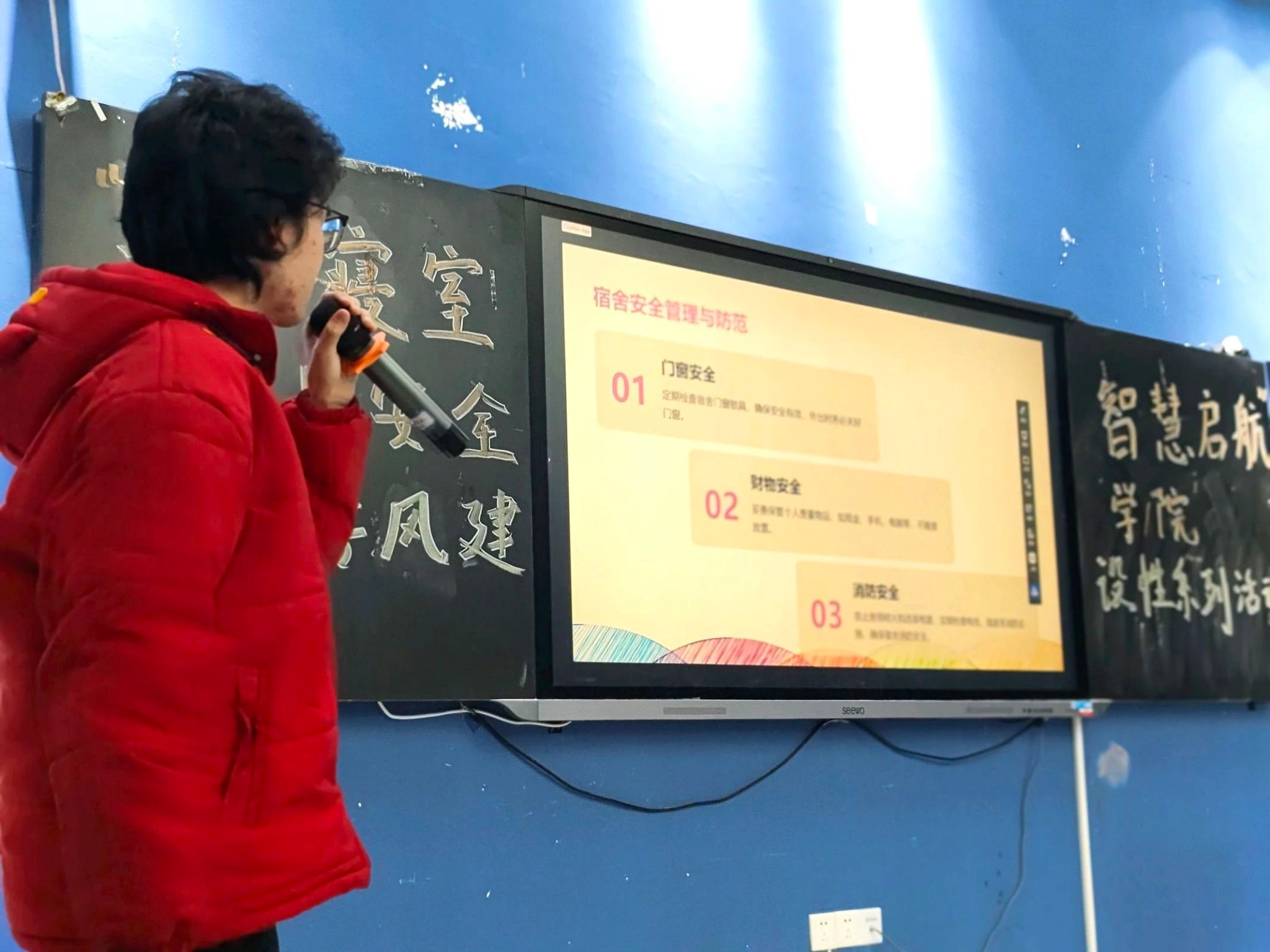 12 月 18 日,备受瞩目的决赛在綦河书院二号楼智慧教室隆重拉开帷幕。决赛当天,工作人员以饱满的热情迎接老师与同学们的到来。在他们的悉心引导下,观众们有条不紊地依次入座,现场秩序井然。而评委老师们也早已端坐在评委席上,眼神中满是期待,准备迎接参赛选手们即将带来的精彩绝伦的表现。