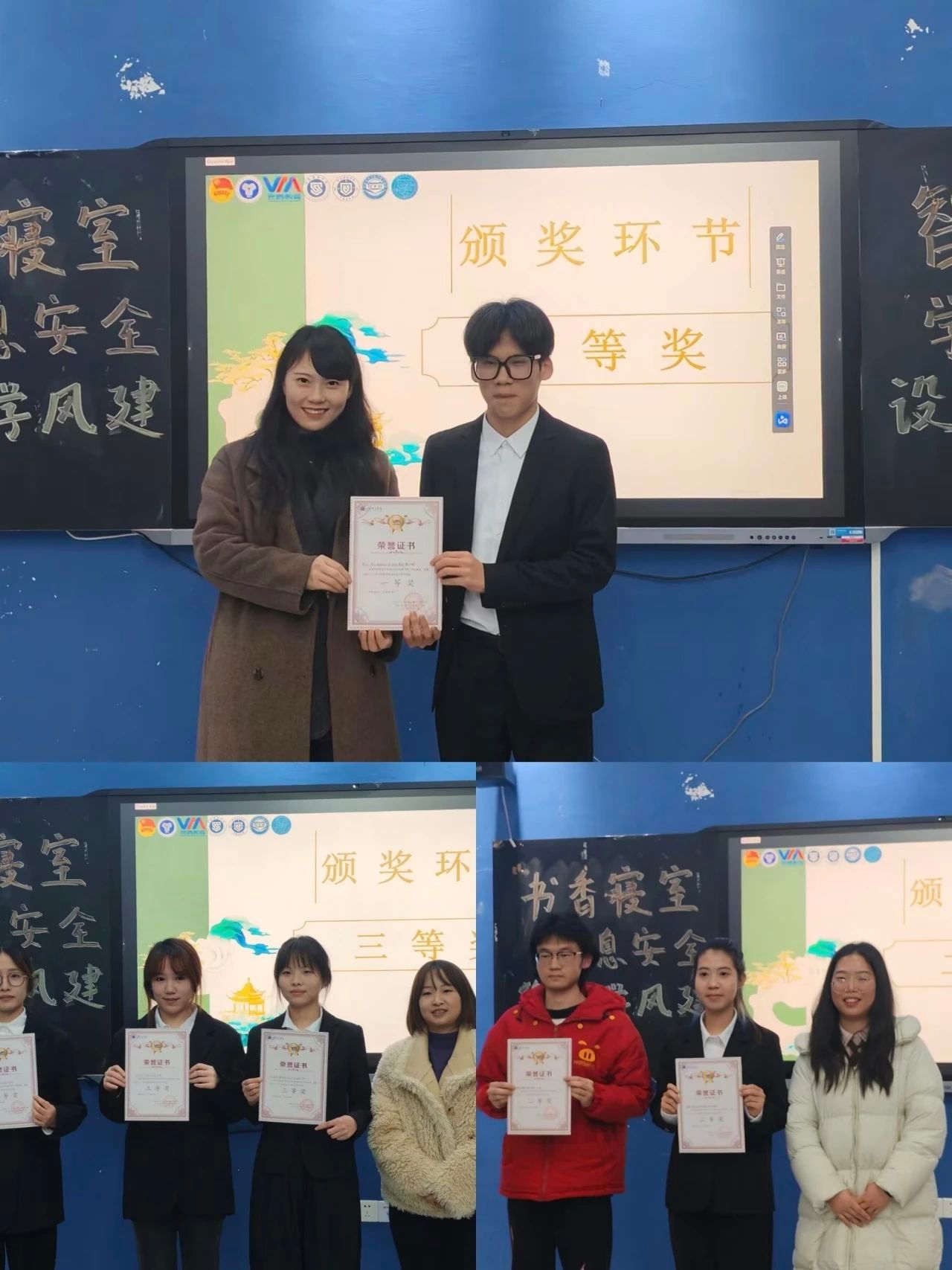 交流结束后,院长进行了总结发言,她告诉同学们要珍惜室友之间的深厚情谊,学会在生活中相互包容、互帮互助。同时,院长对同学们在活动中的出色表现给予了高度肯定,并鼓励大家在今后的学习与生活中继续保持积极的态度,努力养成良好的学习习惯,不断追求卓越。最后,院长亲自为获奖队伍颁奖,并与获奖队伍合影留念,将这一荣耀时刻永远定格。随着大家的合影留念,此次活动也在一片欢声笑语中圆满落幕。