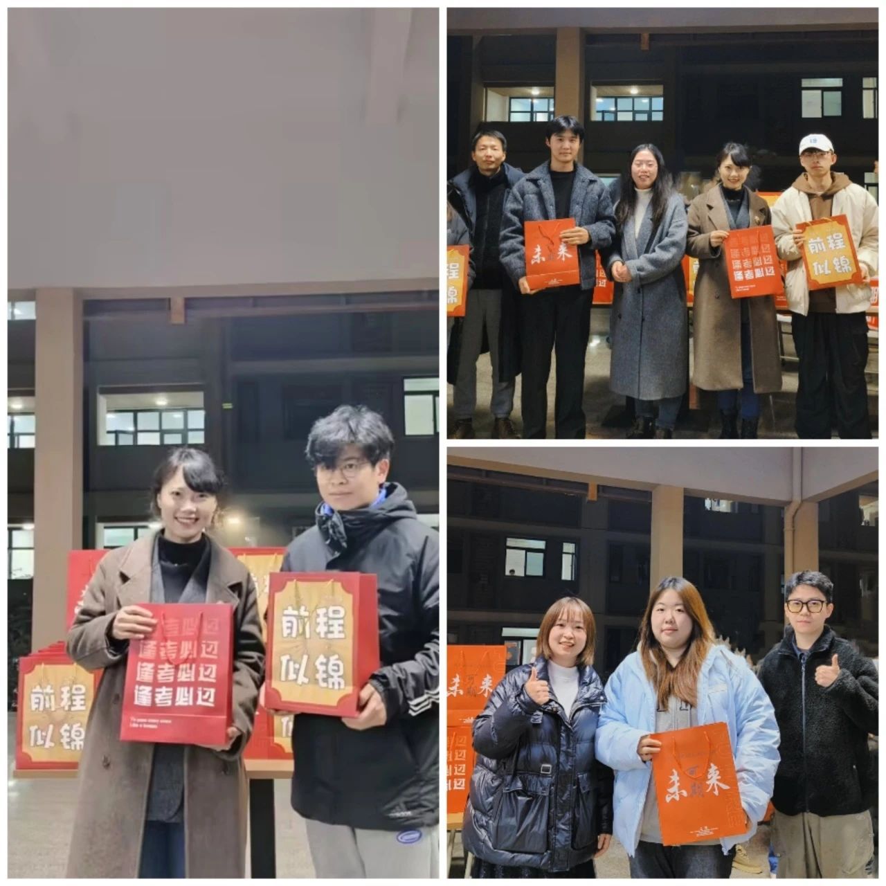 学院领导、老师们对考研学子的亲切慰问,不仅坚定了学院考研学子决胜考场的信心,也体现了学院学生工作的人文关怀与温暖贴心。衷心希望每一位考研学子都能在逐梦的路上坚定信念,奋勇向前,成功抵达理想的彼岸!祝愿全体考研学子们心想事成,金榜题名!