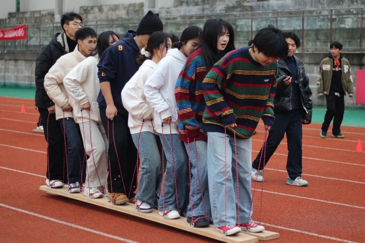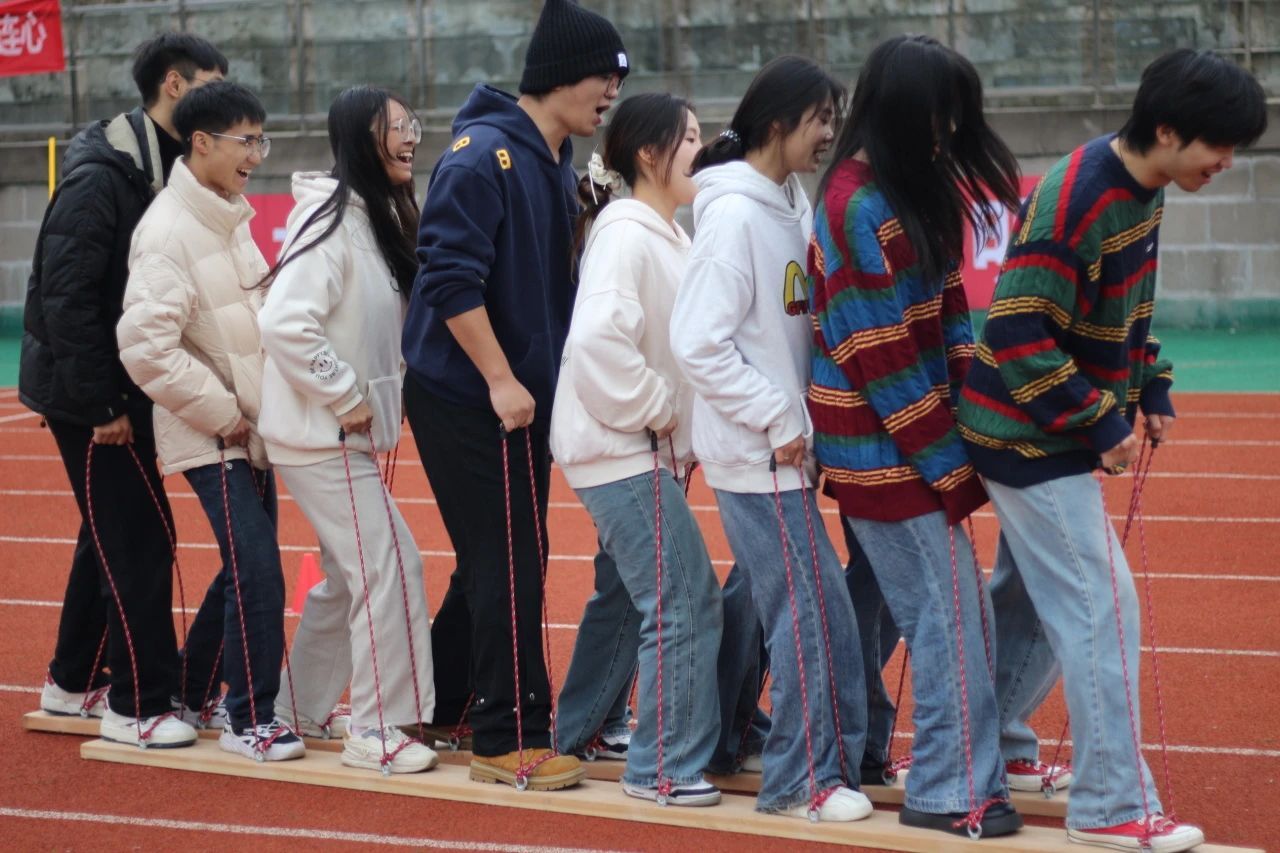 到了有轨电车,信安健儿们上演了一场团队默契的完美交响曲。他们双脚分别踏上了两块木板,手握固定带,仿佛化身为同一辆战车的轮轴,齐心协力地向前推进。在统一的口号声中,他们的步伐如同行云流水,整齐划一,仿佛一人之心,千人之力。在这场考验团队协作的竞技中,信安健儿们如同一支训练有素的军队,高效且优雅地征服了赛道,展现了我院团结一心的精神风貌!
