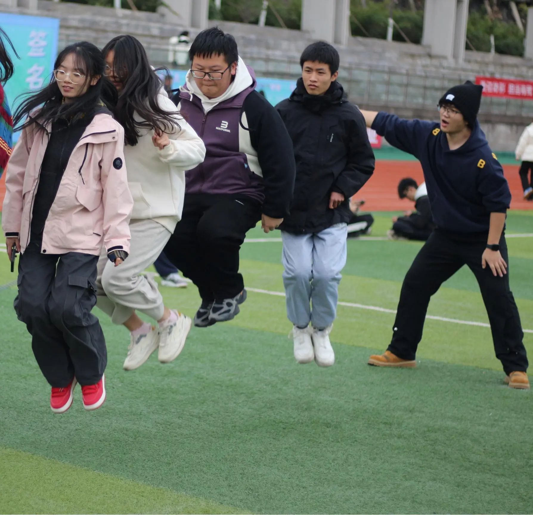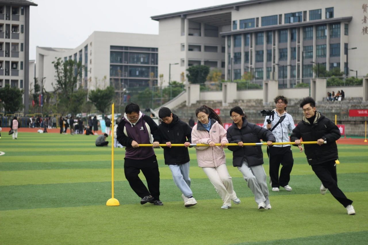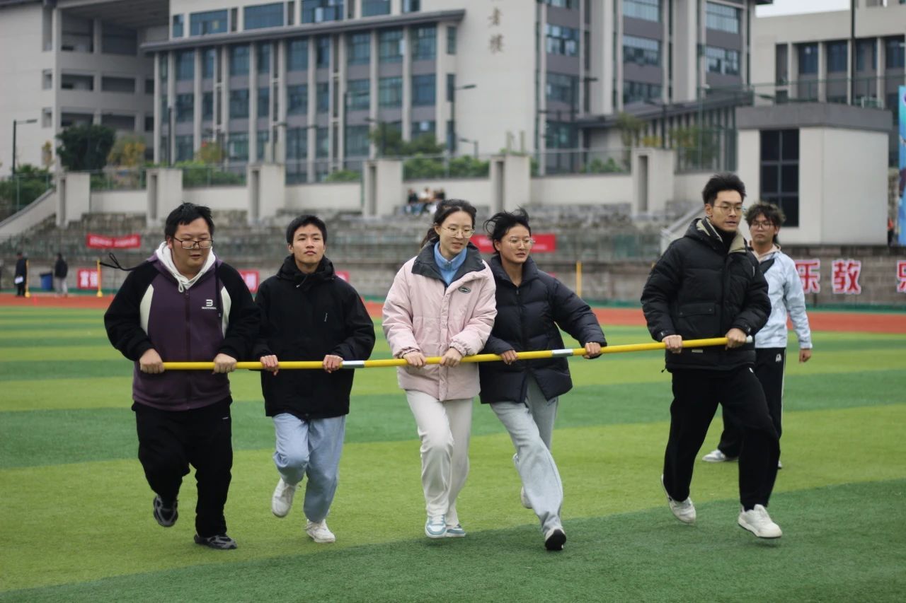 而在旋风跑项目中,他们紧握长杆,横排成阵,化身为场地上的旋风,以惊人的速度绕过一个又一个桩子,绘制出一条“8”字形的轨迹。他们的奔跑不仅是速度的比拼,更是团队协作的完美演绎。在这场风驰电掣的竞赛中,他们的表现让现场气氛沸腾至极,仿佛他们就是这场运动盛宴的闪电英雄!