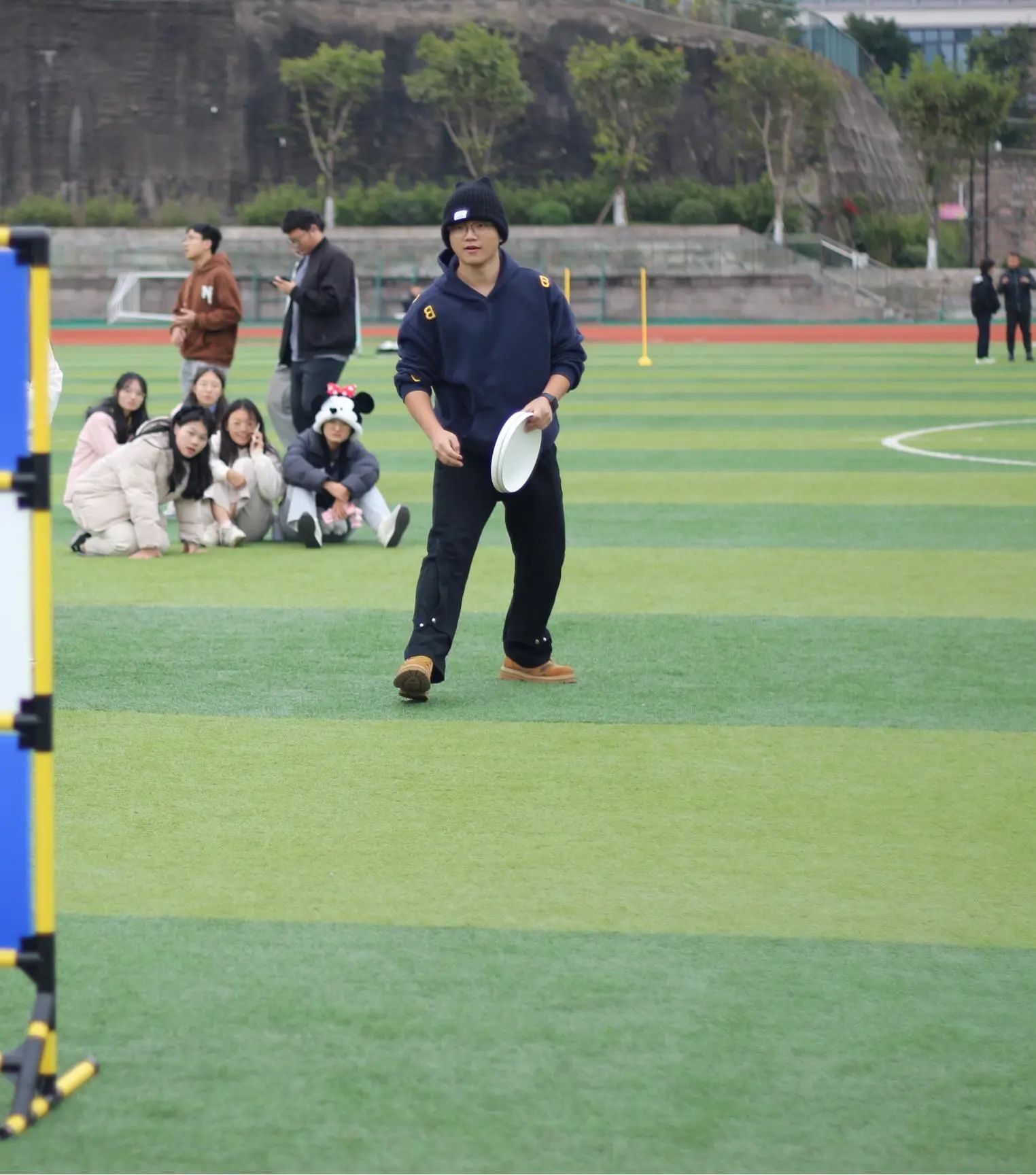 在飞盘九宫格的战场上,他们们展开了一场技巧与智谋的华丽对决。站在距离九宫格6米开外的地方,他们如同神射手般,精准地投掷出飞盘,目标直指那九宫格中的高分区域。每一次飞盘击中挡板的清脆声响,都是他们得分的号角。他们凭借高超的投掷技艺和迅如闪电的反应速度,在比赛中连连得分,成为了当之无愧的飞盘王者!