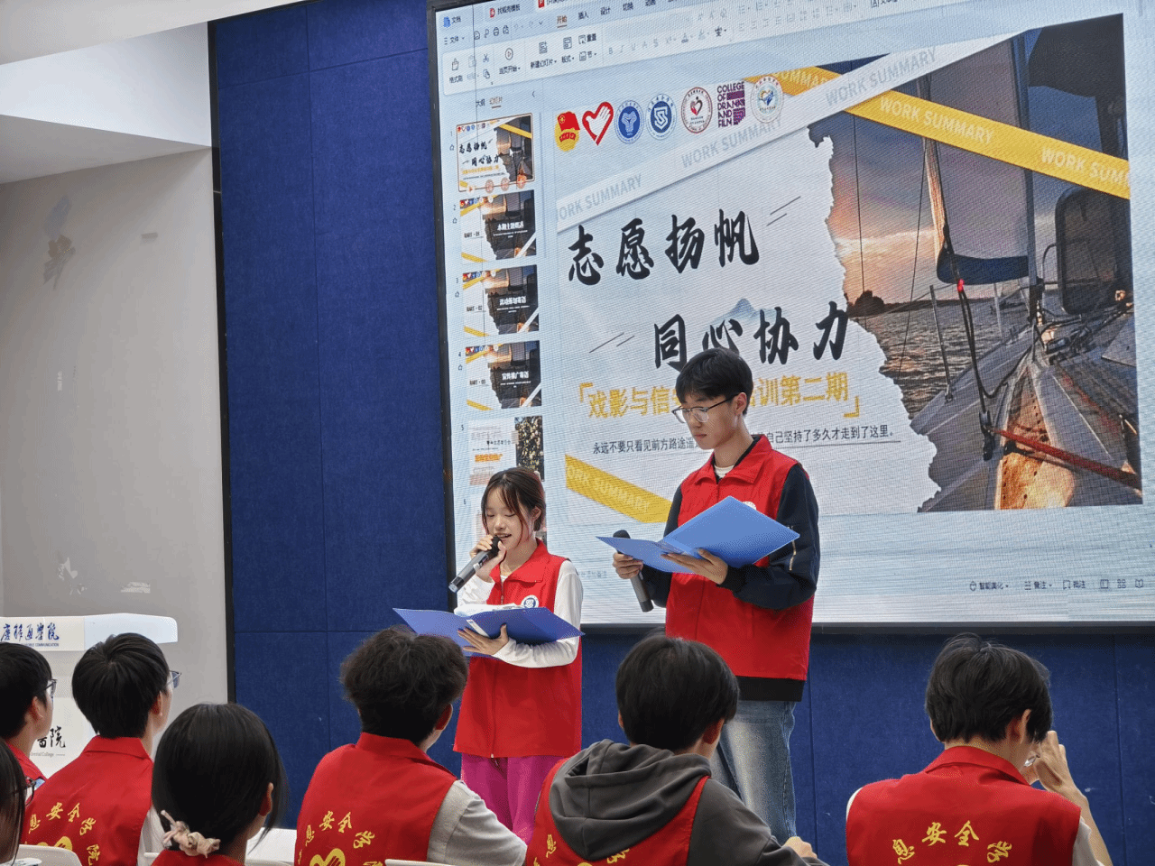 孤举者难起,众行者易趋。在学校中,每个学院都有自己独特的专业领域和丰厚资源。为了汇集各方智慧,实现优势互补。2024年10月25日,信息安全学院团总支青年志愿者协会和戏剧影视学院团总支青年者协会在綦河书院2号楼观涛·多功能报告厅联合举办以“志愿扬帆,同心协力”为主题的第二期花果培训会,让两院学生探索跨领域的知识体系,共享教学资源,互相学习,提高同学们在志愿方面的知识。