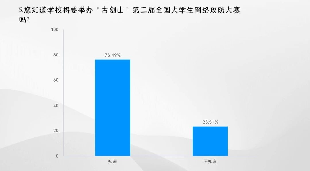 学生知道学校将要举办“古剑山”第二届全国大学生攻防大赛,进一步证明了比赛在学院内的传播效果。