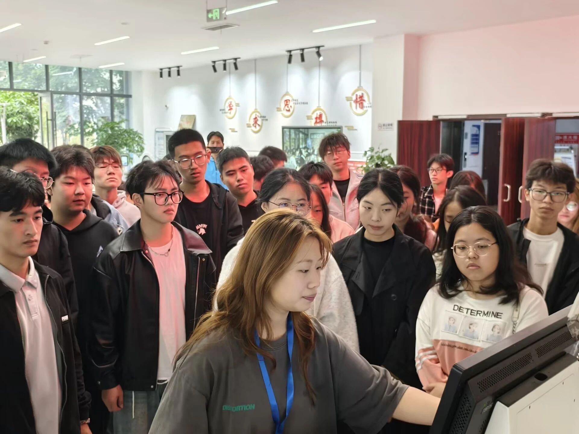 在自习区,同学们看到专注的学长学姐们,他们安静地在书架边看书,书页的翻动声如同心跳的节奏,与灵魂共鸣,那份阅读的沉静与专注使思绪渐渐沉淀。同学们被他们的学习热情所感染,也深刻体会到了大学图书馆作为学习场所的重要性。