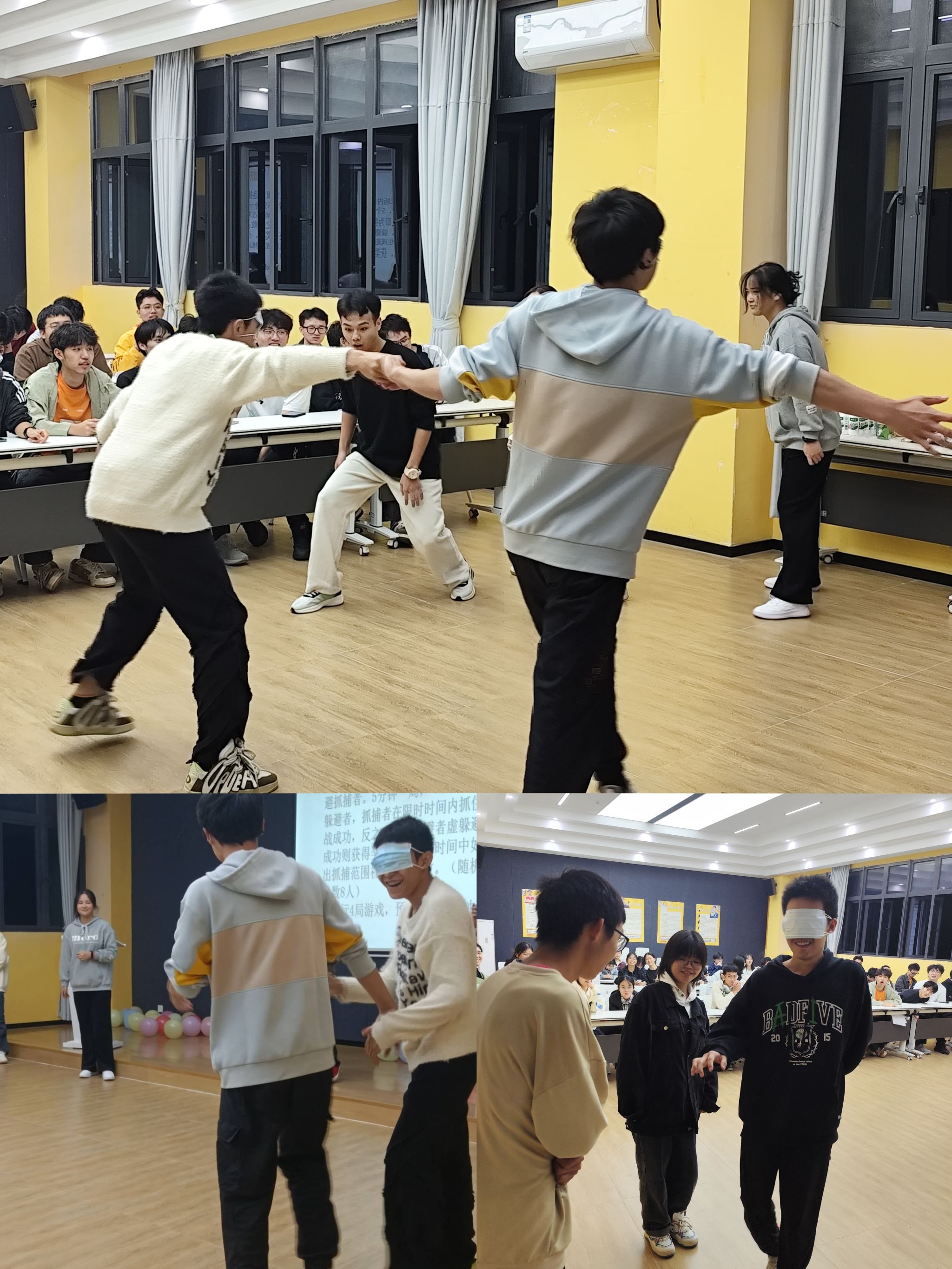 为了调动同学们的活动参与度、提升团队协作能力,本次年级会准备了丰富多彩的活动,有“瞎子摸鱼”“猜歌名”“唇语挑战”等活动,还准备了琳琅满目的奖品。活动的开展使同学们在繁忙的大一生活中得到放松和快乐。每一个项目同学们都齐心协力,积极竞争。互动过程中黎老师和16班班导师范德杨也加入了游戏,充分地和同学们进行互动,激发了同学们加入活动的兴趣,使同学们进入欢乐的状态中,拉近了老师和学生的距离,营造出轻松有趣的氛围。