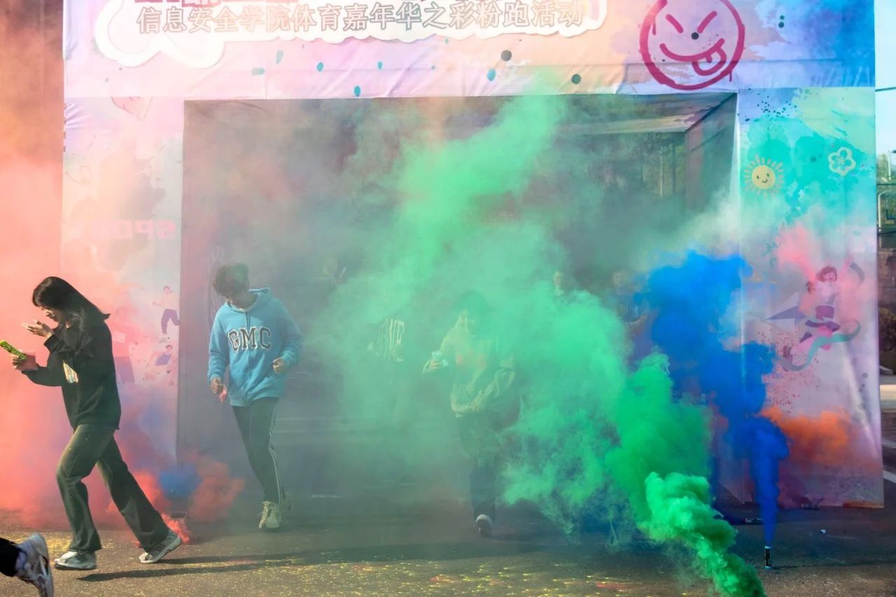 春意盎然,活力四射,预告一场青春的狂欢。3月19日,二期与三期书院的外围主干道化身为五彩斑斓的欢乐海洋,由信息安全学院团总支学生会体育部倾力打造的“悦动色彩·活力无限”——信安体育嘉年华之彩粉跑活动,在万众瞩目中盛大开启。同学们热情似火,纷纷踏春而来,投身这场色彩斑斓的盛宴。他们在绚丽的彩粉中尽情奔跑,放声大笑,每一个跃动的身影都为这个春日注入了无限活力,青春的朝气几乎要从屏幕中喷薄而出。