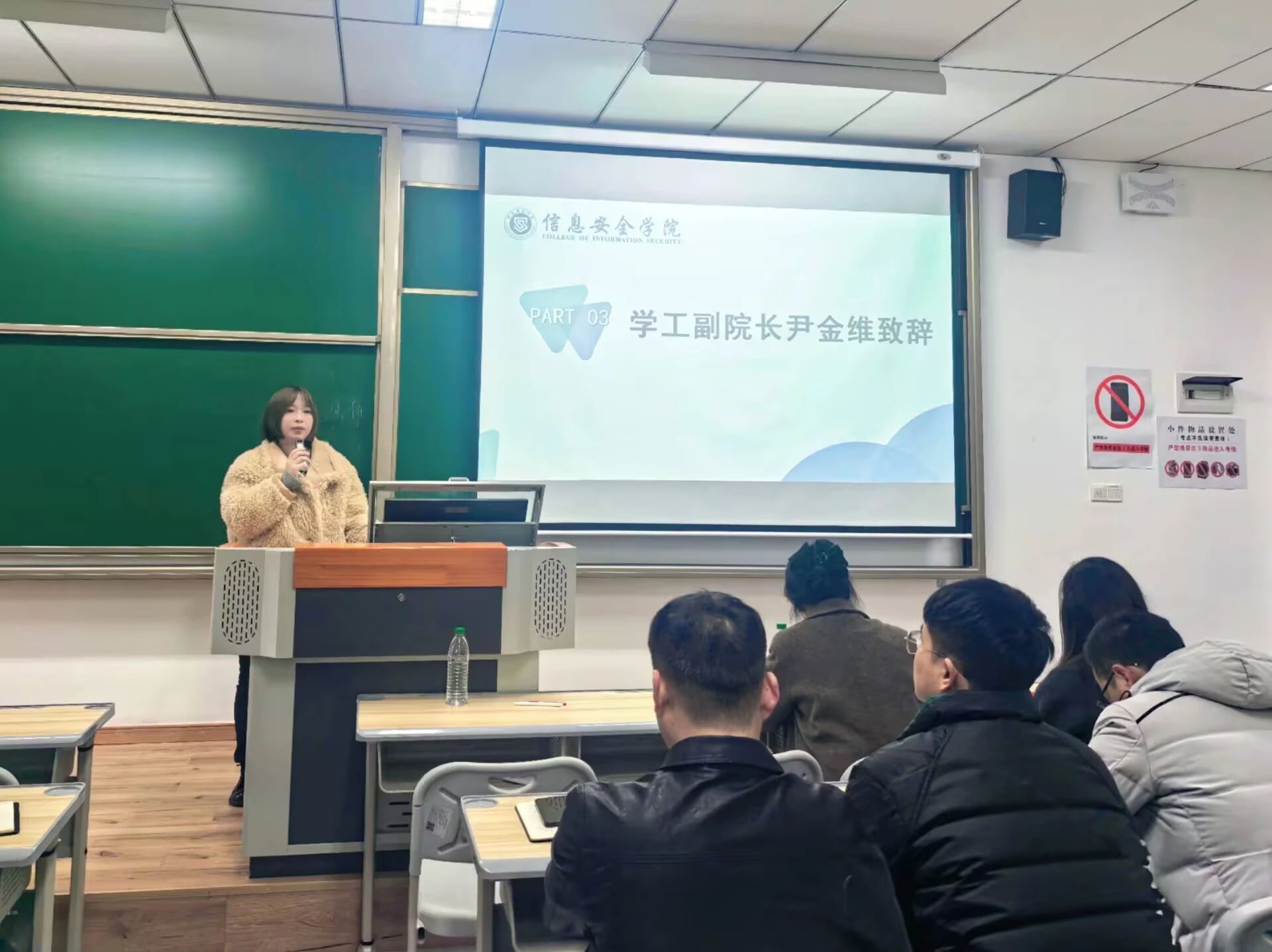 为助力信息安全学院学子明晰职业方向,提升就业竞争力,同时保障毕业论文质量,2025年3月7日下午13:00-15:00,信息安全学院于行者楼309开展2026届毕业生就业创业工作动员大会暨2025届毕业生论文指导交流会。信息安全学院院长王宁、学工副院长尹金维、教学副院长周小艳、各教研室主任、学工办主任、团总支书记、就业创业工作办公室主任、2025届毕业生毕业设计指导老师以及2025届和2026届毕业生辅导员共同参会,共商毕业生就业创业工作和毕业论文指导相关事宜。