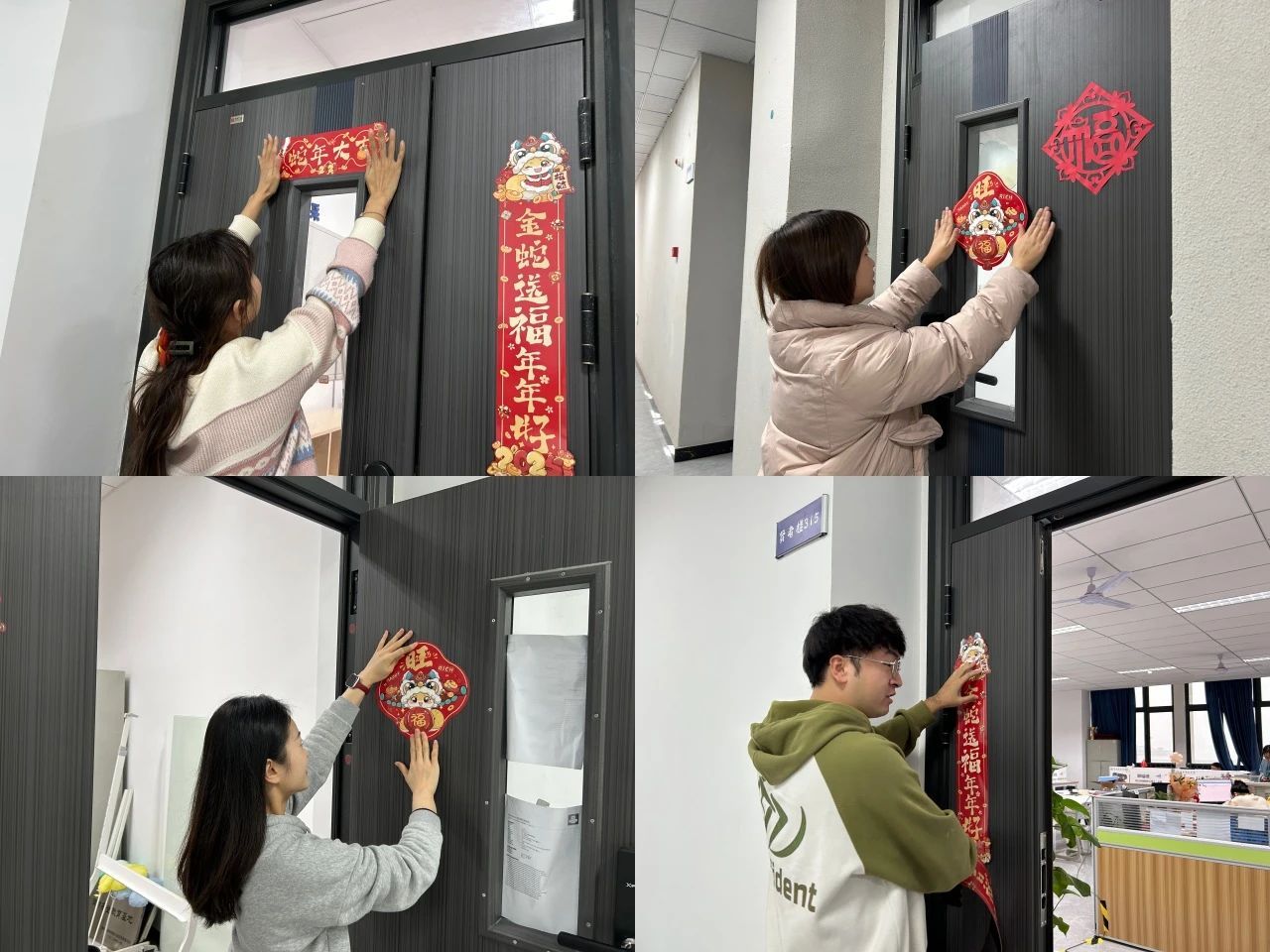 此次活动将述职与团建相结合,辅导员们劳逸结合,在紧张正式的述职总结之后沉浸在放松身心的团建当中。游戏结束后,每位老师在幸运大转盘中抽取一份幸运小礼,之后移步“前线”——办公室,进行新年氛围布置——贴春联,一同感受新年的快乐,共同期待新年新气象。