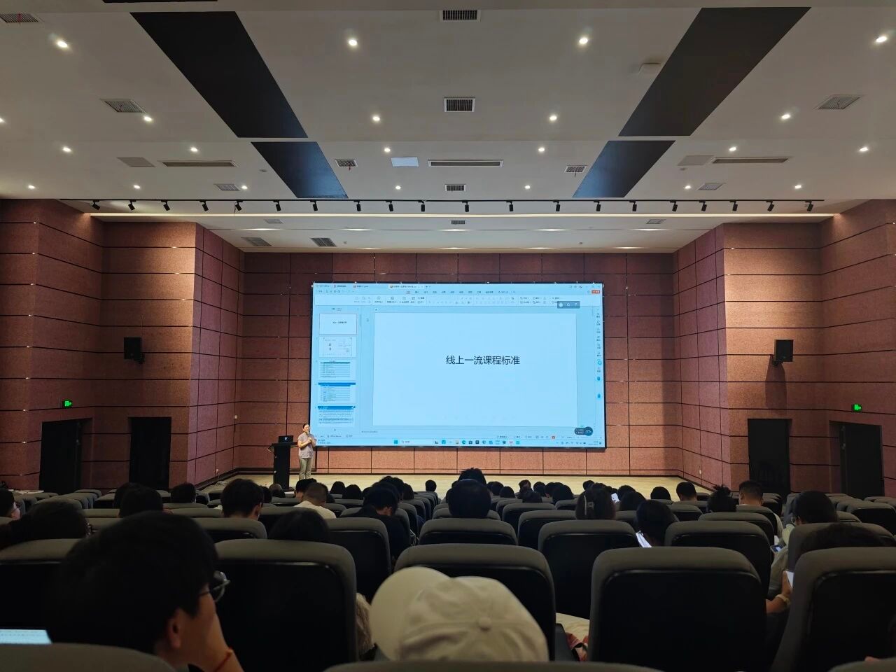 在现场交流环节,师生围绕“如何发展有课程特色的一流课程建设方式”“课程建设中的资源高效整合利用”“线上资源共建共享”等实际问题踊跃提问。她建议优先选用轻量化智慧平台;回应知识图谱更新问题时,提出“师生共建、动态完善”方案,她鼓励教师“先试用、后评估”,确保技术真正服务育人。现场解答兼具针对性与操作性,氛围热烈,参会教师纷纷表示收获了可直接应用的教学改进思路。