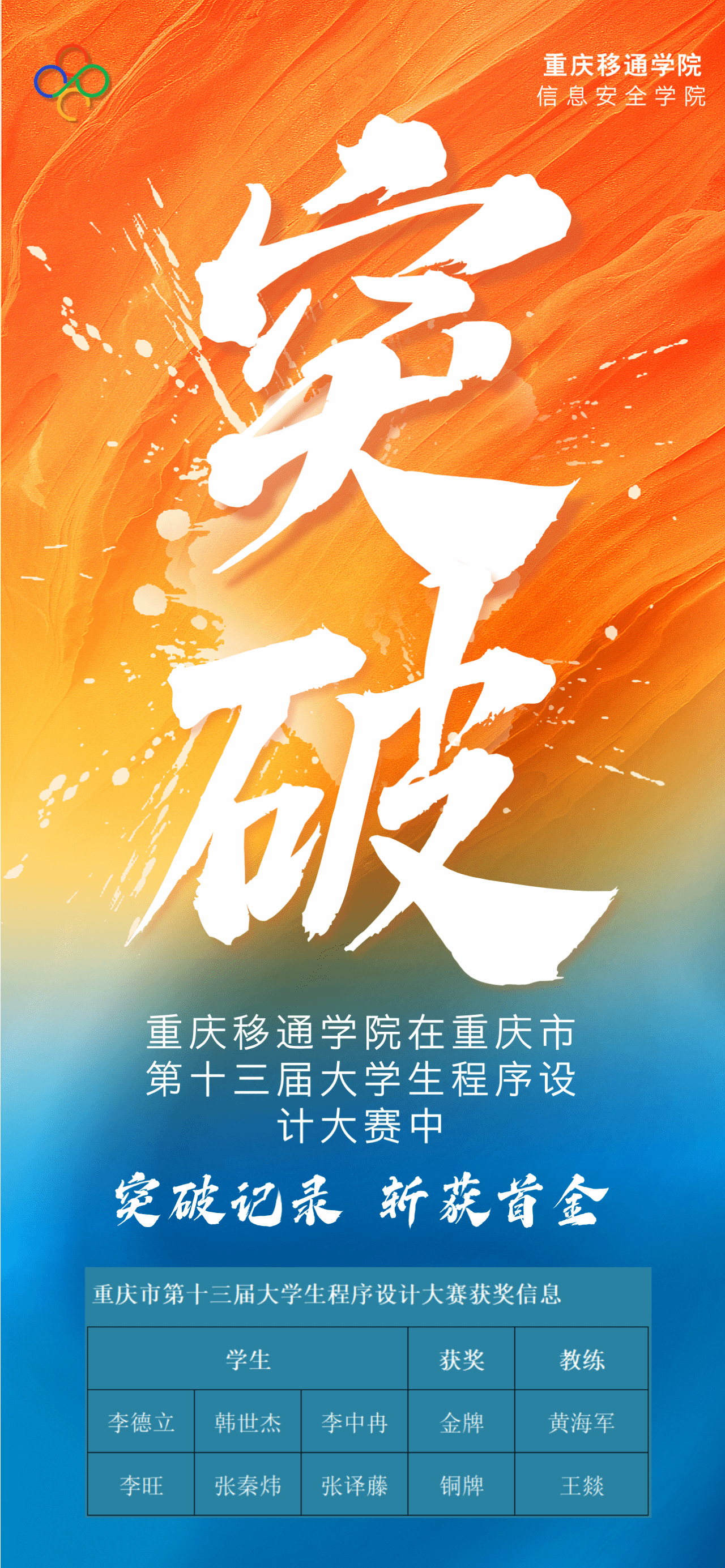 重庆市大学生程序设计大赛是面向大学生的重要学科竞赛活动,目的在于激发学生开展计算机程序设计的兴趣,提高各高校、高职院校学生的计算机程序设计能力,培养学生的综合素质和实践创新能力。同时,大赛为重庆市、四川省等高校的大学生以及市内部分中学校的学生提供学习交流的机会,丰富学生的第二堂课活动。重庆移通学院参赛队伍在信息安全学院教师指导团队的带领下,凭借扎实的专业功底和出色的临场发挥取得佳绩。