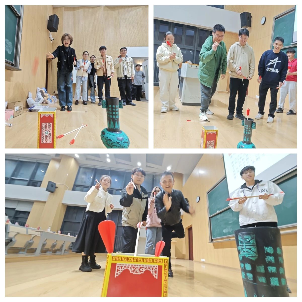 在互动中,还特别准备了“投壶”游戏,融入了传统文化的趣味体验。投壶是一项古老的礼仪活动,不仅让教师们在游戏中感受到浓厚的文化底蕴,更增添了挑战的趣味性。教师们分组参与比赛,每个人都跃跃欲试,兴致盎然,既锻炼了专注力和团队配合能力,也让大家感受到中国传统文化的独特魅力。每一投、每一次欢呼,都让气氛达到新的高潮。