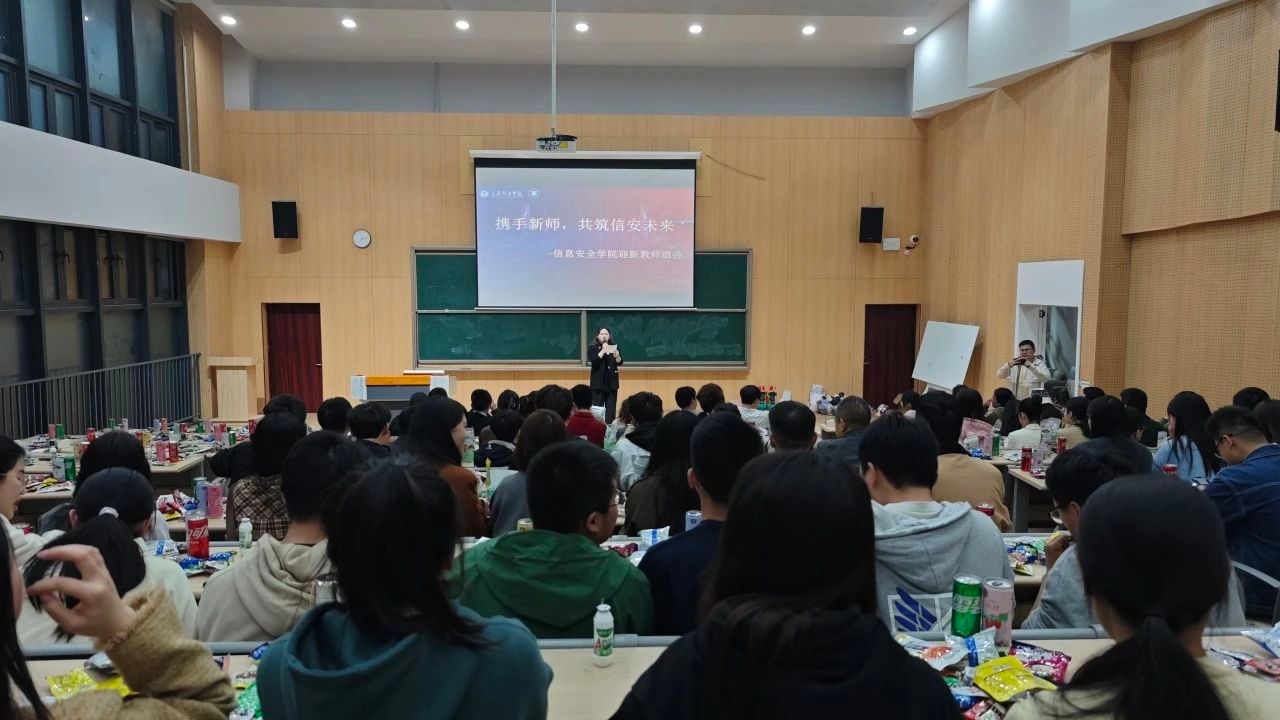 为热烈欢迎新教师的加入,打造融洽工作氛围,增强团队凝聚力,提升教师归属感,更好推动各项工作开展,共同展望学院美好未来。2024年11月13日晚上19:00,信息安全学院在玉棠书院举办了以“携手新师,共筑信安未来”为主题的工会迎新教师酒会,学院全体教职工参加。活动内容丰富多彩,不仅设有多项互动游戏,还特别融入了反诈防骗宣传,现场气氛热烈,欢声笑语不断。