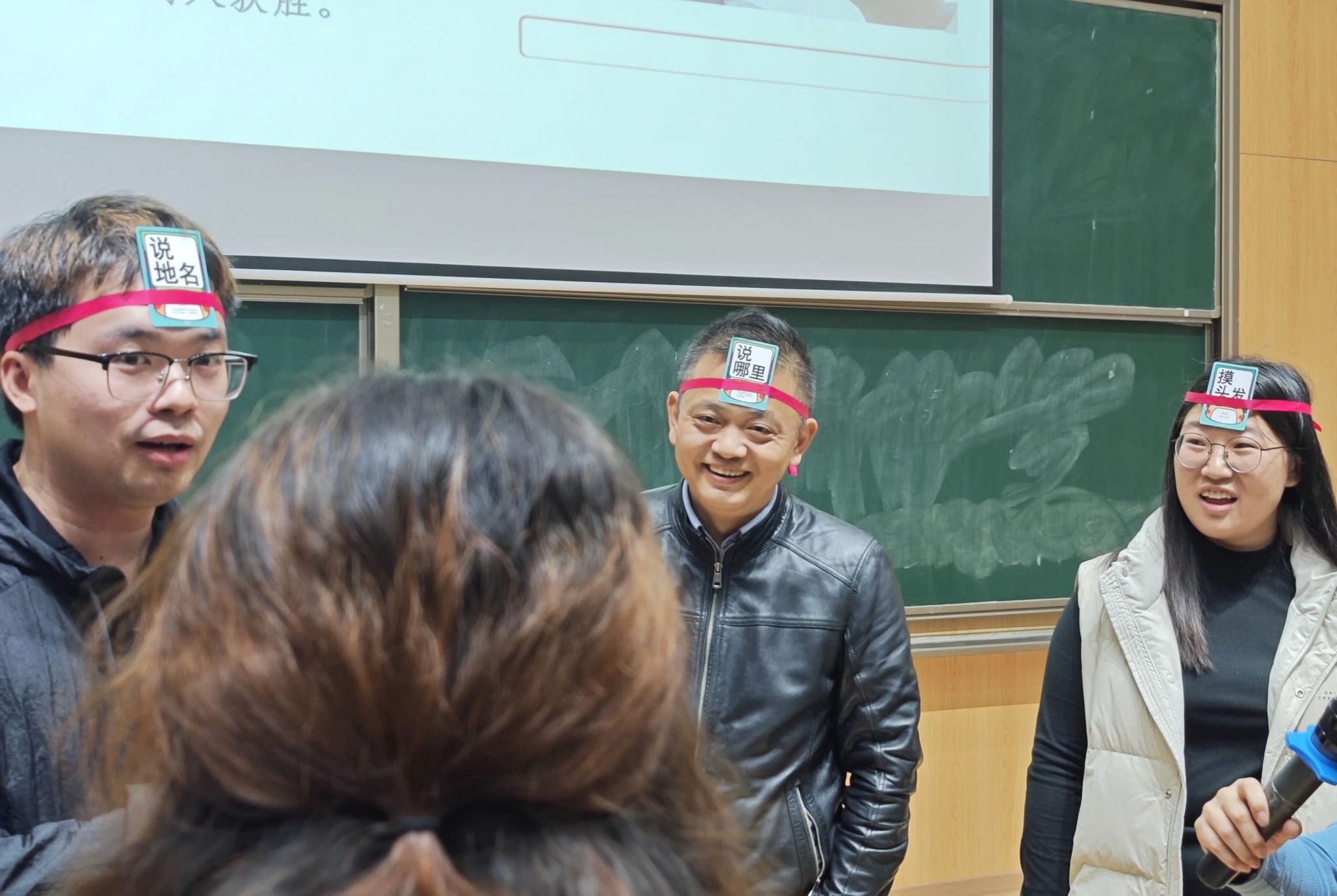 趣味游戏--拉近距离,增进了解。活动的第一个环节是“你的名字”游戏,邀请3位教师上台挑战记住台下任一排老师名字。3位教师需在短时间内快速记住并准确说出对方的名字,在轻松活泼的氛围中让新老教师加深了彼此的认识,为日后融洽的工作合作奠定了基础。台上台下的互动热烈,既有热情的掌声,也有轻松的调侃,洋溢着欢乐的氛围。