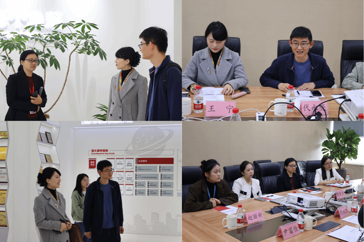 10月30日10:00,参观了北京超图软件股份有限公司,超图软件是亚洲最大、全球第二大的GIS软件企业,提供云、边缘、桌面、组件、Web、移动等多种GIS产品和解决方案。了解了企业文化、企业发展历程、企业荣誉和企业应用案例后,王宁介绍了学校和信息安全学院情况、代永亮介绍了双体软件精英产业学院情况,与超图软件行政专家周素川、教育生态团队高级团队总监王璐、高级HRBP总监邓婷和教育活动运营主管赵丽新在教育生态、高校合作、实习招聘等方面进行了深入交流,探讨了在竞赛、校园大使和校园招聘上合作的点和可能性。交流期间,行政专家周素川对于双体往期学员在企业内部的成长速度和表现表示高度认可,双体9期学员张伟已经成长为华东大区共享团队兼西北创新与服务改进团队总经理;高级HRBP总监邓婷回顾了之前双体招聘的情况,确认了学员实习时间点。但也表示近三年企业所面临的招聘情况不容乐观,在有合适招聘需求的情况下推荐学生实习就业。