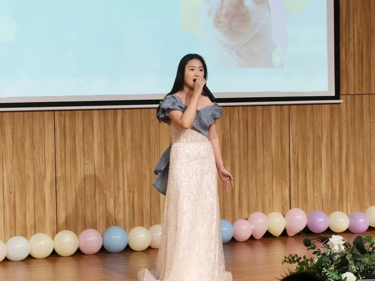 现场观众的热情似火,每当旋律响起,台下观众便情不自禁地随节奏挥舞手臂,欢呼声如潮水般阵阵涌来。中场时分,指导老师曾莉的惊喜登场将现场的氛围推向高潮,她以精湛的美声演唱惊艳全场,为这场青春赛事增添了别样的艺术魅力,展现了讲台之外的艺术家风采。