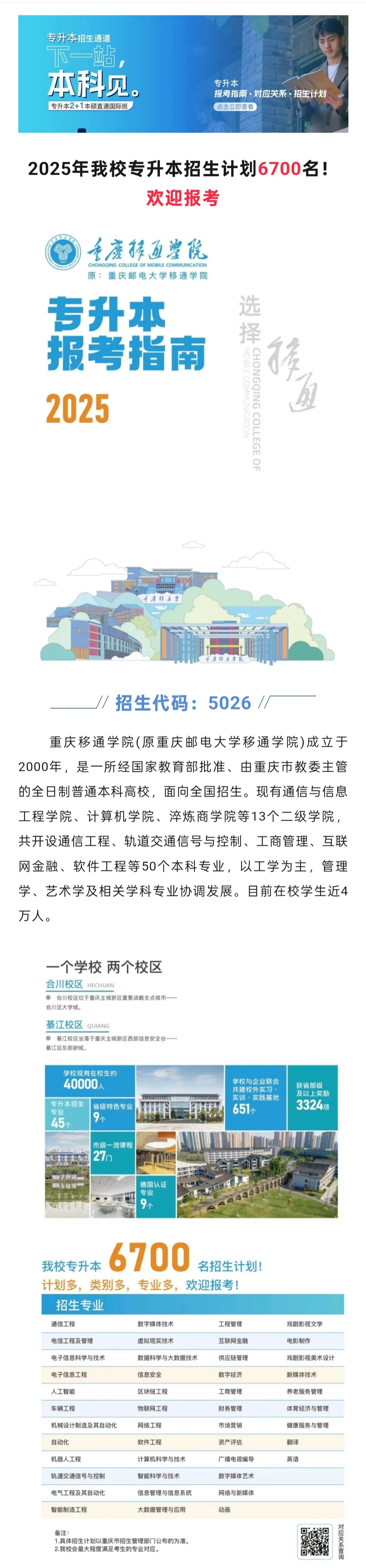 重庆移通学院2025年专升本招生简章