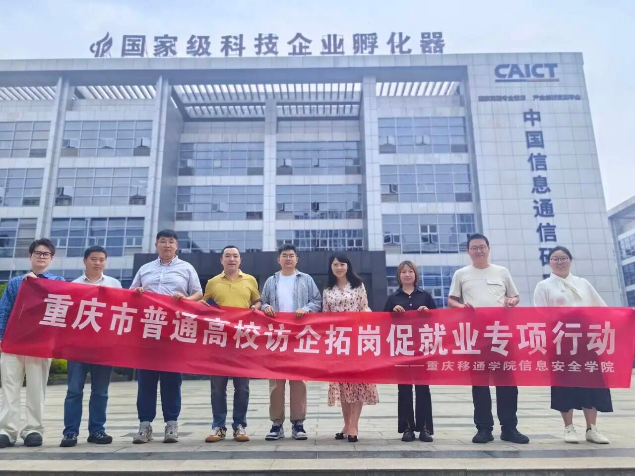 为精准对接行业需求,深化产教融合创新,重庆移通学院(綦江校区)信息安全学院于2025年5月14日开展“访企拓岗促就业”专项行动。学院院长王宁、学工副院长尹金维、信息基础教研室主任杨宏志、就业创业工作办公室主任袁君及创新中心负责人李晨曦先后走访中国信息通信研究院西部分院、华建集团上海景域园林建设发展有限公司(西南公司)、元道(重庆)航空科技有限责任公司三家企业,围绕校企协同育人、实践基地共建、人才定向培养、拓展学生就业岗位等议题达成多项合作共识,为提升学生就业竞争力、服务区域经济发展注入新动能。
