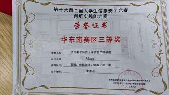 第十六届全国大学生信息安全竞赛创新实践能力赛华东南赛区获奖荣誉