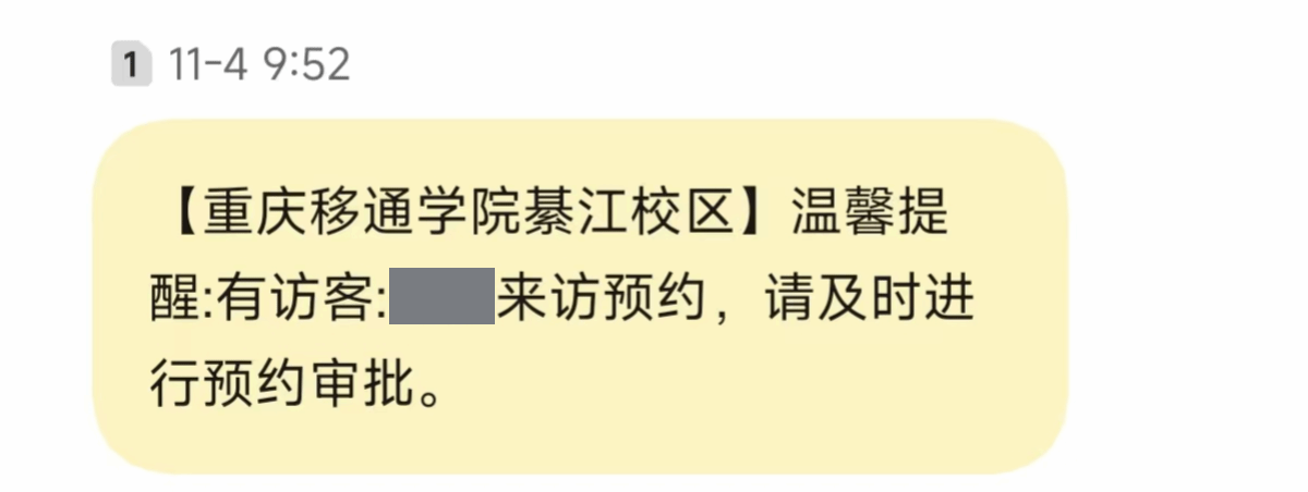 访客预约审核通过后,各部门管理员会受到短信通知。
